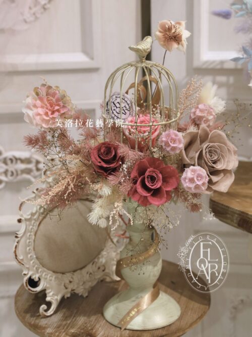 永生花鳥籠|溫柔心語|粉玫瑰 × 復古鳥籠設計|浪漫文青款