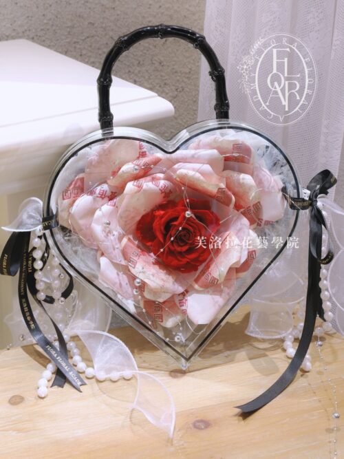 愛心鈔票花盒|山茶花型|情人節禮物|時尚手提盒