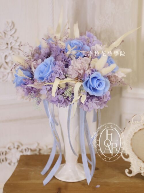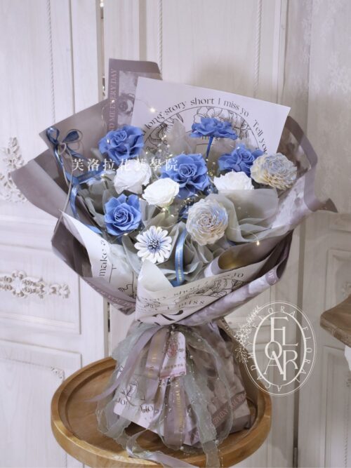 永生花束|夜晚安潔拉|藍白色系永生花束|氣質款