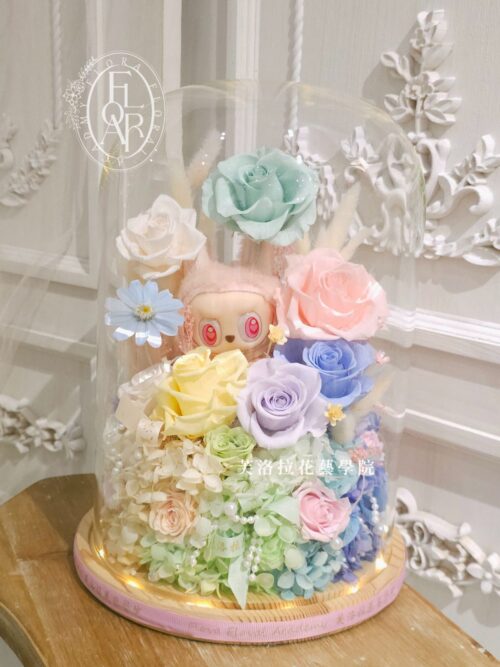 永生花玻璃罩|LABUBU彩虹花園|繽紛玫瑰 × 潮流公仔|療癒收藏款