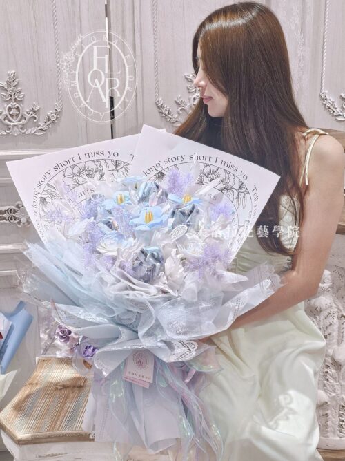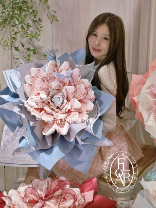 巨型鈔票花束|山茶花造型|淺藍色夢幻款