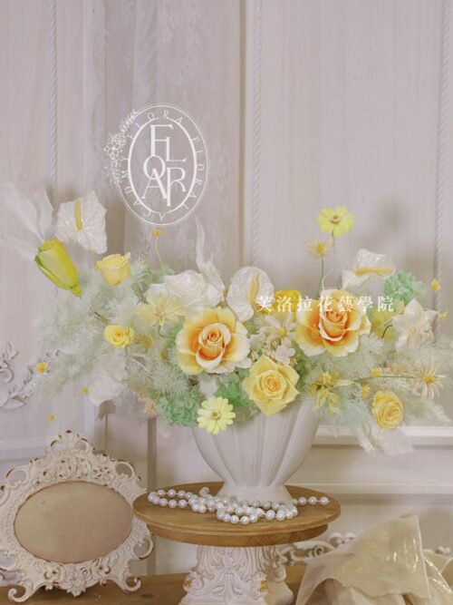 黃白色永生桌花|夏日清爽|花藝設計 |家中擺設