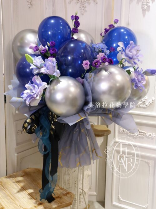 氣球花籃|藍紫色系|開幕花籃|高架花藍