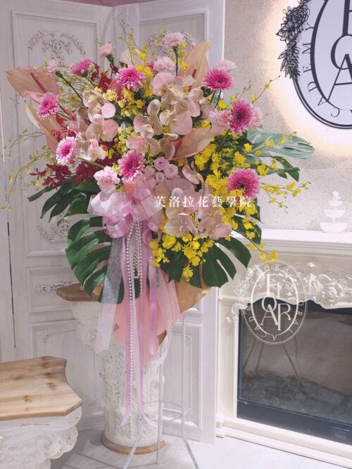 高架花籃|粉紅喜悅|蘭花 × 菊花 × 玫瑰 × 文心蘭|浪漫典雅款