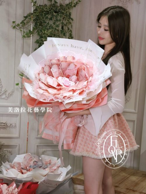 巨型鈔票花束|山茶花型|粉色系|有錢花