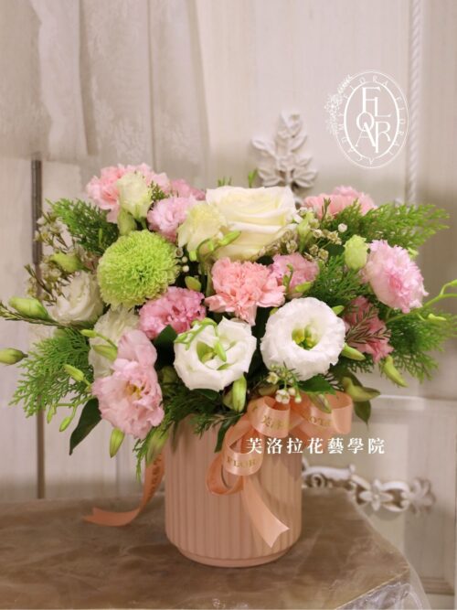 芙洛拉花藝學院,除證照課程外仍有許多花藝作品販售,只要是參與過課程之學員,除購買永生花花材之外,店內販售之材料皆有低於會員價之優惠,故如後續持續產生作品販售,仍可至本店購買花材。