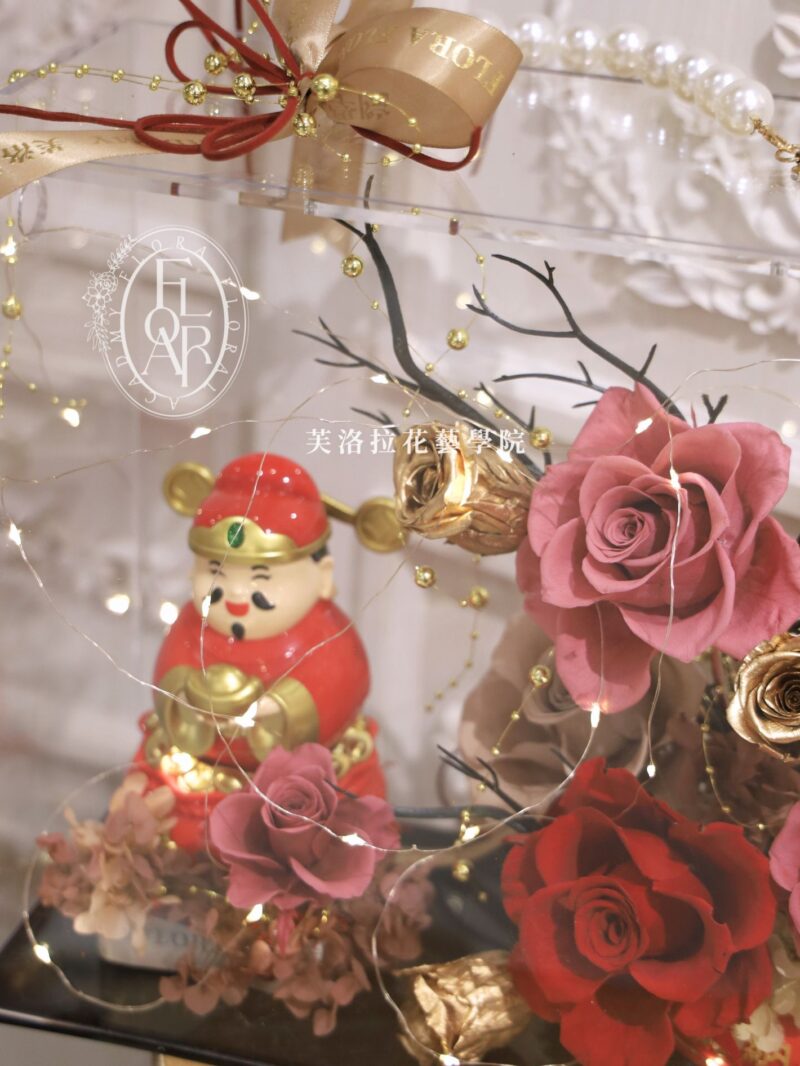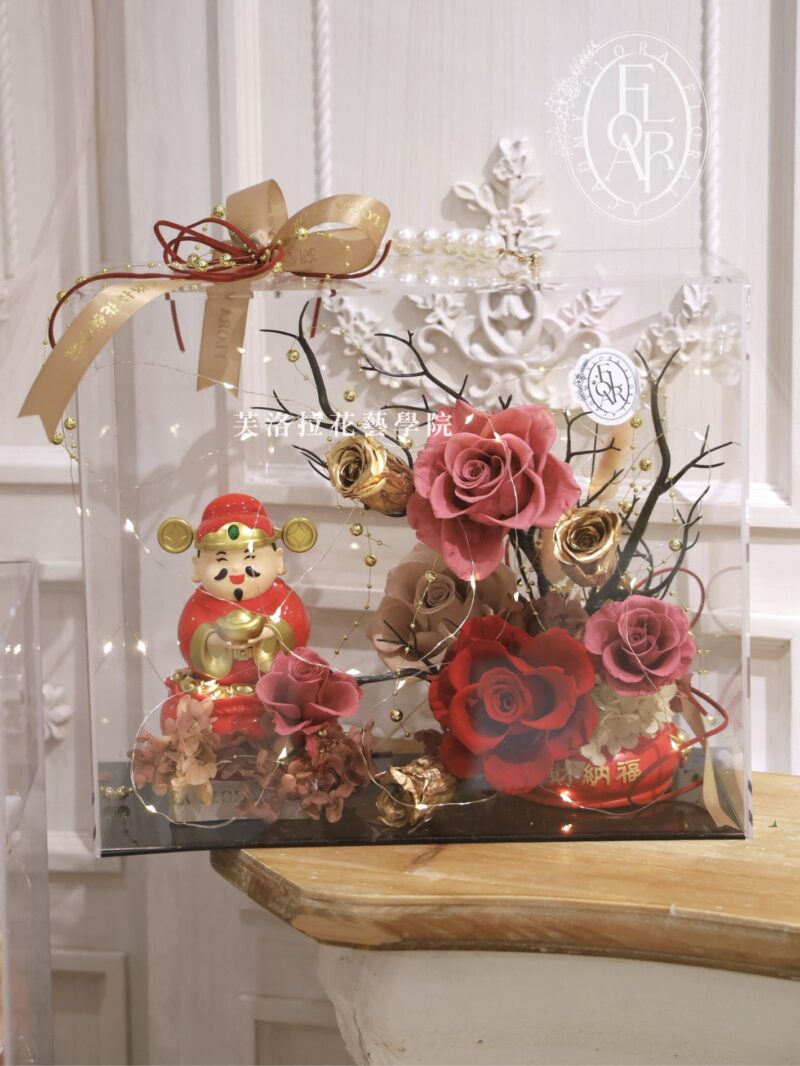 搭配招財財神爺,讓整份花禮既大方又充滿祝福感。