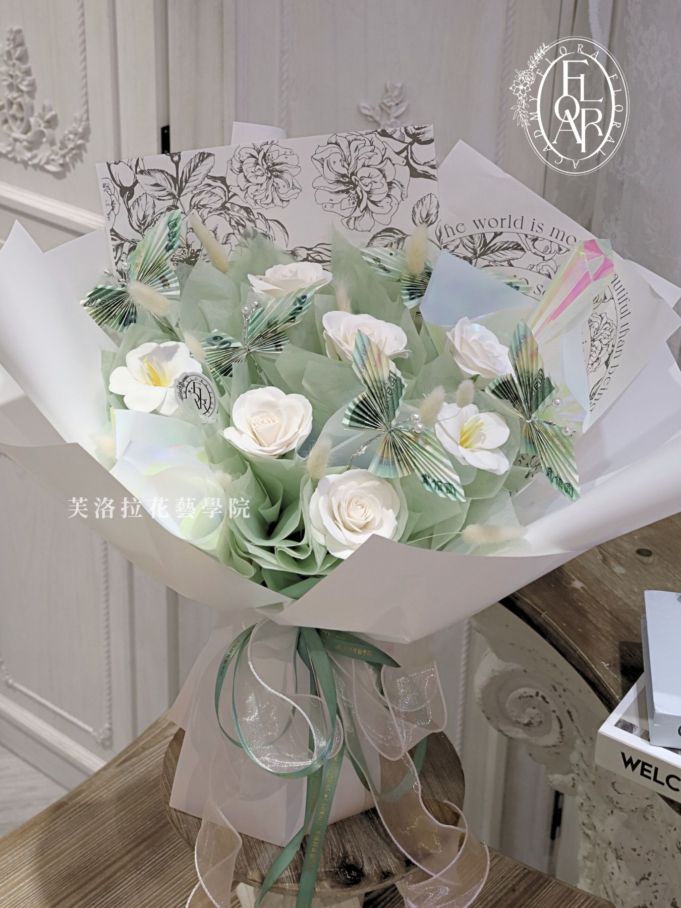 鈔票蝴蝶花束|兩百元鈔票|香皂花|有錢花 #清爽氣質,也可以有份量。 像是走進春天的森林裡, 蝴蝶落在白玫瑰上。 清透薄荷色讓整束花看起來清新又浪漫, 既有儀式感,也有實在的份量。 生日、畢業、升遷都能成為亮眼焦點。 (使用現金為2000元) 花束尺寸M Categories: 情人節520, 母親節/父親節, 生日, 祝賀花禮, 節日節慶, 花束, 花束, 鈔票花系列, 頒獎/晉升/退休 Tags: 七夕情人, 告白花束, 客製化, 情人花束, 浪漫禮物, 玫瑰花, 現金花, 紙鈔玫瑰, 紙鈔花, 花束, 鈔票花 Description Reviews (0) Description #清爽氣質,也可以有份量。 像是走進春天的森林裡, 蝴蝶落在白玫瑰上。 清透薄荷色讓整束花看起來清新又浪漫, 既有儀式感,也有實在的份量。 生日、畢業、升遷都能成為亮眼焦點。 (使用現金為2000元) 花束尺寸M ❁面額可依預算客製化❁ ❁會員另有優惠❁ ❁色系可客製化❁ Reviews There are no reviews yet. Be the first to review “鈔票蝴蝶花束|兩百元鈔票|香皂花|有錢花” 取消回覆發佈留言必須填寫的電子郵件地址不會公開。 必填欄位標示為 *Your rating * Rate… Perfect Good Average Not that bad Very poor Your review *Name * Email * 在瀏覽器中儲存顯示名稱、電子郵件地址及個人網站網址,以供下次發佈留言時使用。 Related products 客製化花禮/聖誕節/花藝設計/節日節慶/祝賀花禮鮮花花圈|冬日玫瑰頌 Winter Rose Carol|紅玫瑰雪松花圈|𝓜𝓮𝓻𝓻𝔂 𝓒𝓱𝓻𝓲𝓼𝓽𝓶𝓪𝓼聖誕限定款 Read more 空間佈置/節日節慶/開幕/佈置/客製化佈置/婚宴喜慶/開幕交車慶祝•BMW交車現場氣球佈置 Read more 盆栽/節日節慶/祝賀花禮/喬遷/開幕/盆栽桌上型盆栽|招財貓開運竹|開幕禮 原價 NT$1,299 Add to cart